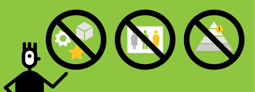 … decorate. Outlined boxes, sweeping brush strokes, and colored bands do not add to your strategy’s meaning. In fact, they can distract from your real message and clutter your communication. This is also true for tiered visual elements like pillars and pyramids.