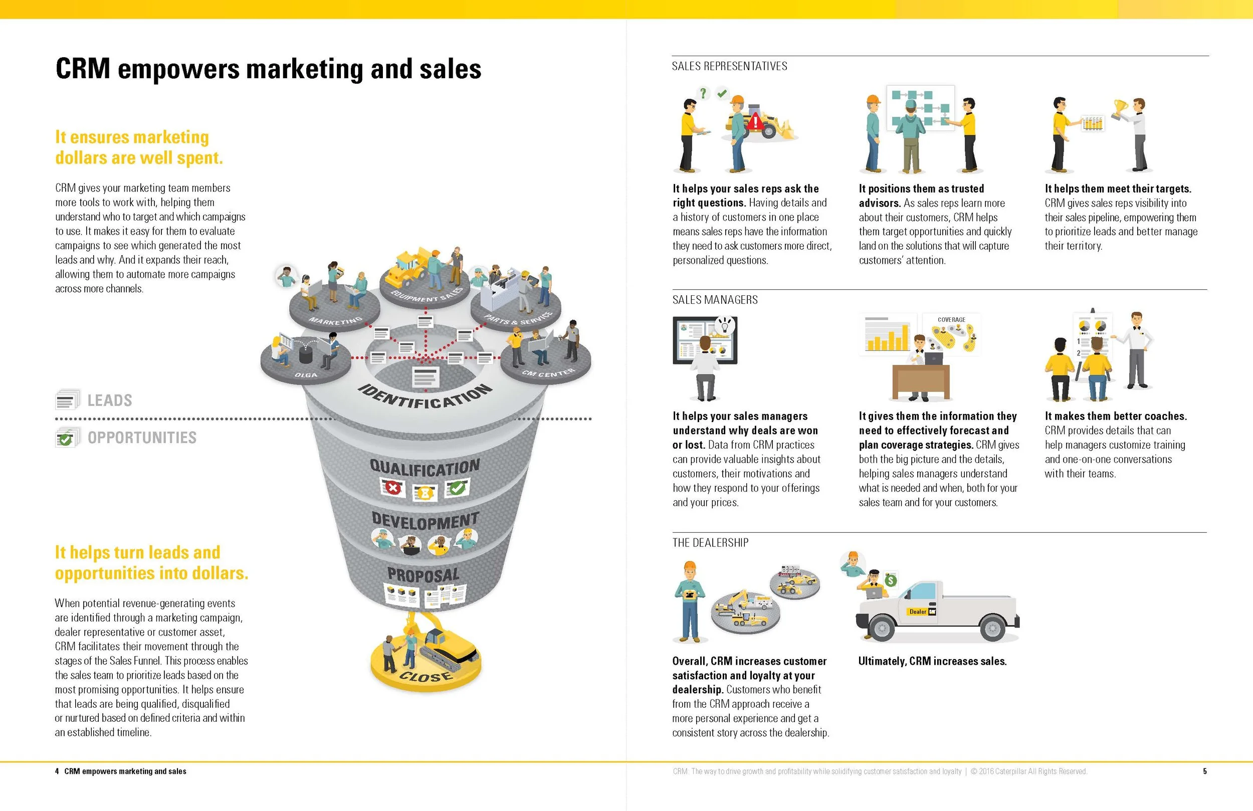 Caterpillar reps can use with dealers to evaluate CRM maturity and plan steps for improvement.